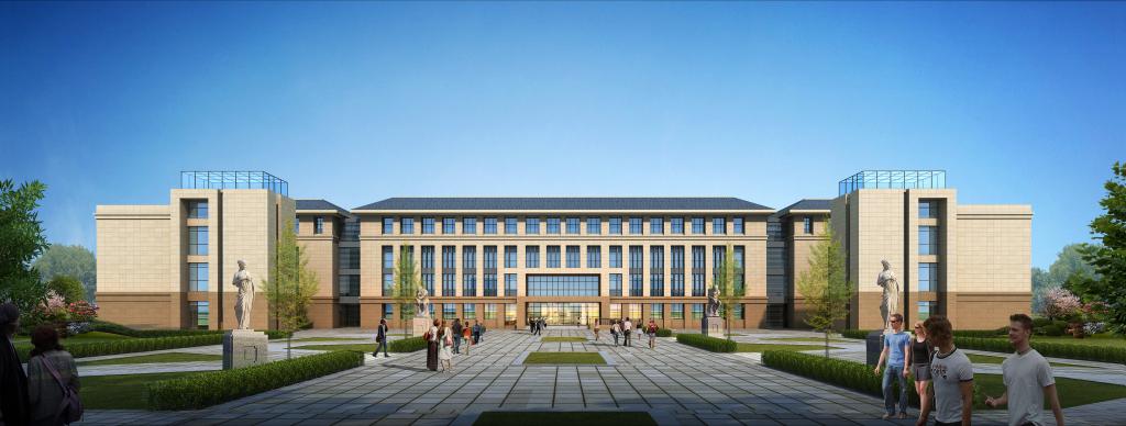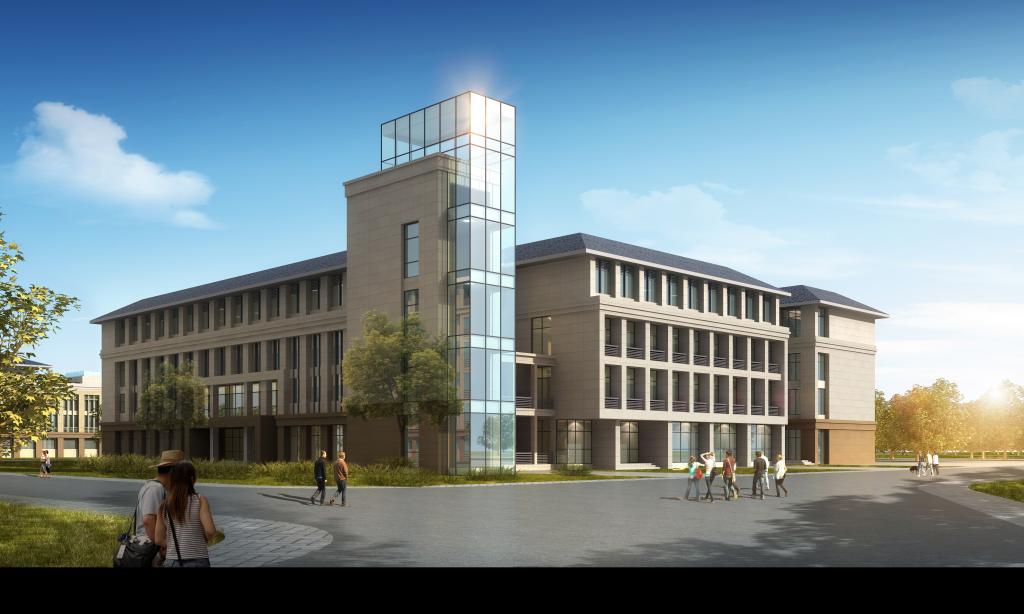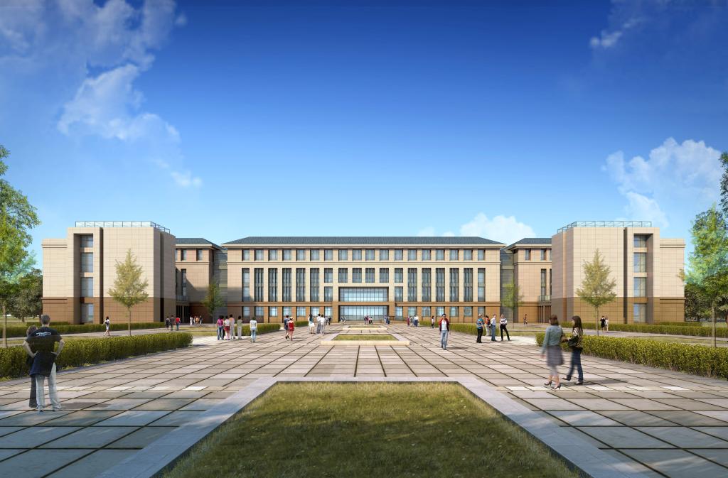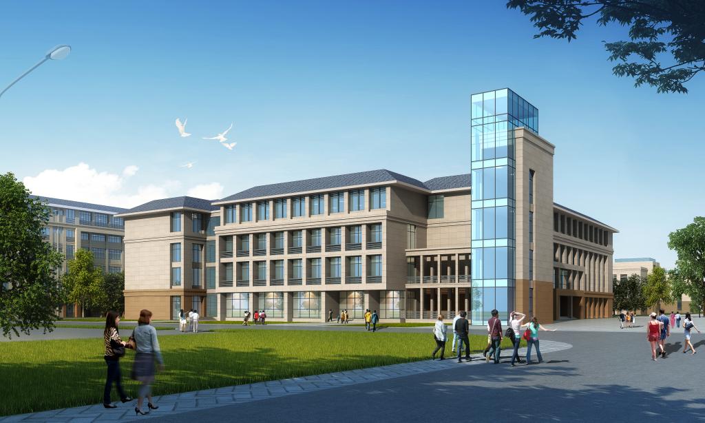 教学楼三座,共有教室104间,办公室132间,会议室20间,层高首层4.2米,其它层高4米,瓷砖地面,瓷砖墙裙,装饰石膏板吊顶,灰色隔热断桥铝合金窗,教室为钢制门,办公室为装饰防盗门,外墙首层为干挂咖啡色花岗岩,2-4层为真石漆,局部玻璃幕墙,屋面蓝色波形瓦小青瓦。