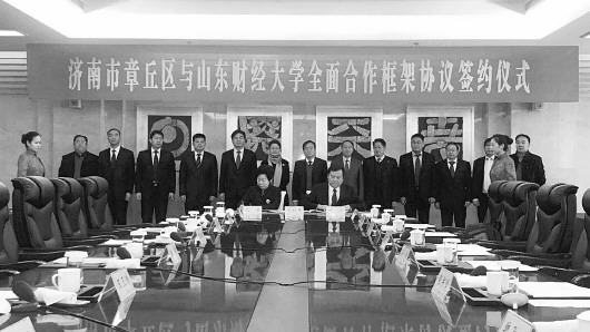 12月16日,济南市章丘区与山东财经大学签订全面合作框架协议,为山财大主校区加快建成按下了“快进键”,校地双方将全面合作。章丘将全面支持山财大的“双一流”建设计划和打造“全国一流财经特色名校”的发展目标。为培育、吸引、留住高端人才,章丘还推出一系列人才新政,每年为驻章高校、企业推出数千套人才安居房,并承诺人才房价格低于市场价格。