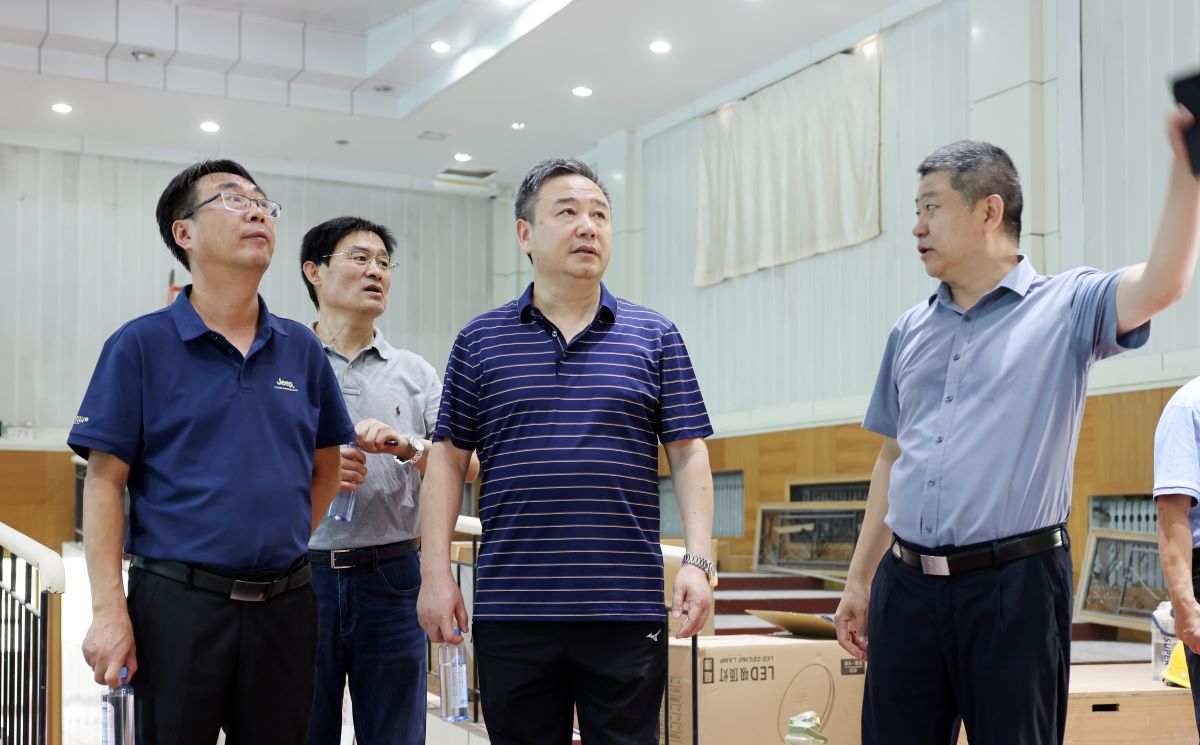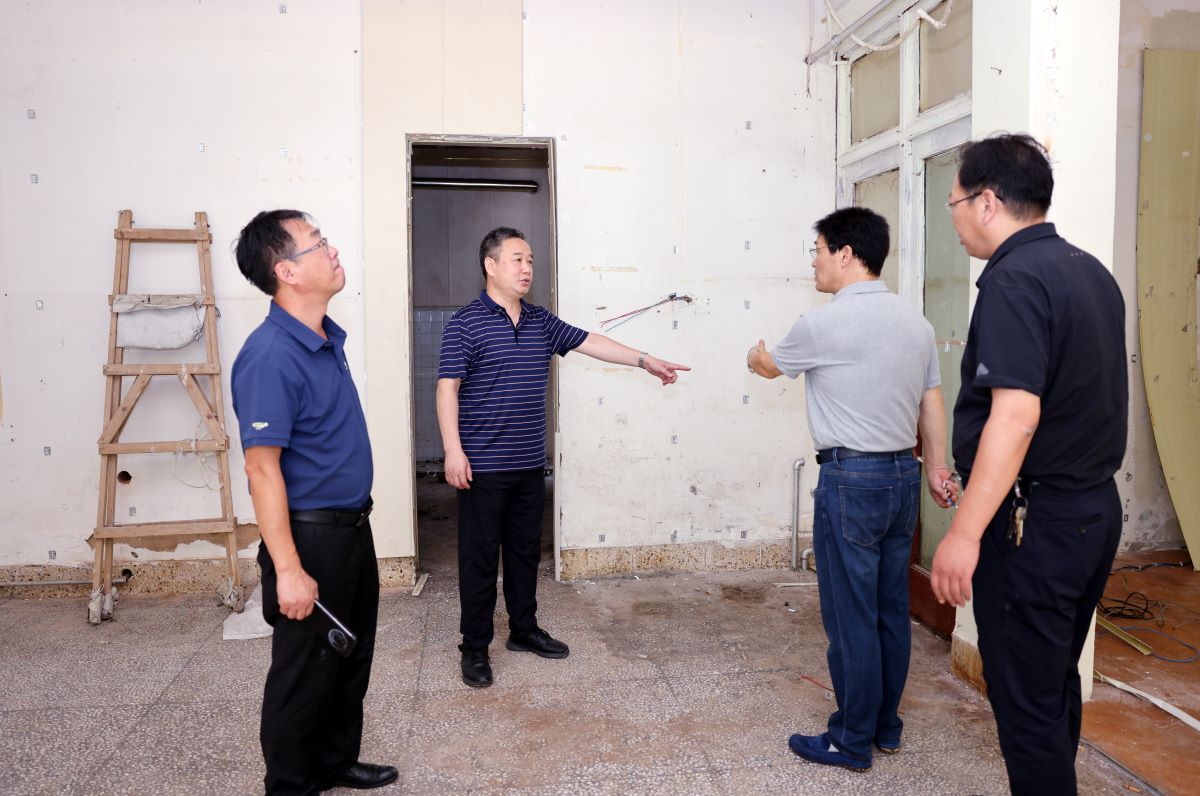 8月9日上午,校党委书记查玉喜、副校长赵奎皓,党委委员、宣传部部长于洪良一行到舜耕校区、燕山校区看望慰问暑期基建维修工程施工人员,检查调度暑期基建维修工程。