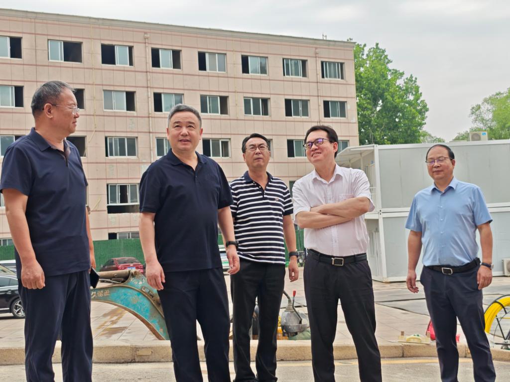 5月22日上午,校党委书记查玉喜、校长洪俊杰、副校长赵奎皓调研舜耕校区原招待所4号楼项目竣工验收准备工作。